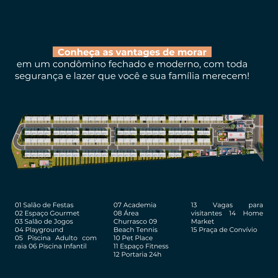 Além disso, o condomínio oferece uma gama de facilidades e lazer incomparáveis:
